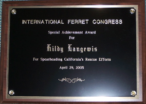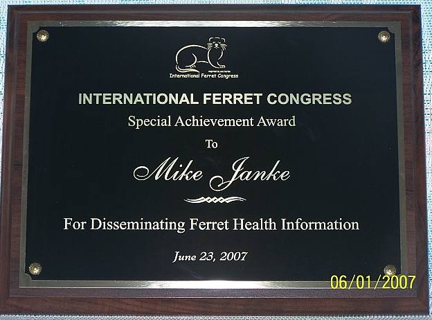 It has become the custom at the International Ferret Symposiums® to present Special Achievement Awards to members of the ferret community who have shown outstanding service over the years.